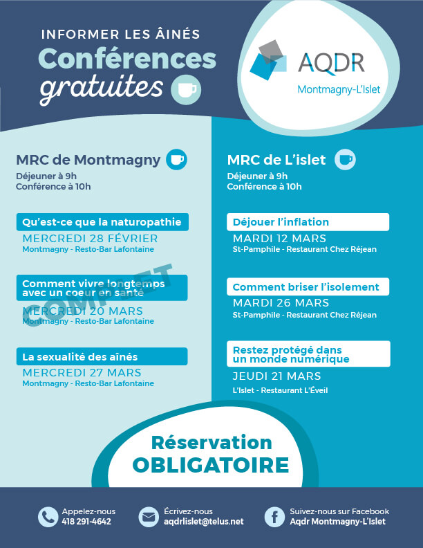Pour découvrir notre nouvelle fiche informative sur la Proche aidance développée lors de notre conférence avec Catherine Hudon du CAB de Montmagny et de l’Islet, cliquez sur le bouton: