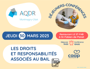 Le Centre d’assistance et d’accompagnement aux plaintes de Chaudière-Appalaches (CAAP) propose une conférence informative pour les personnes souhaitant approfondir leurs connaissances en matière de droits et de responsabilités liés au bail en résidence privé pour aînés (RPA).