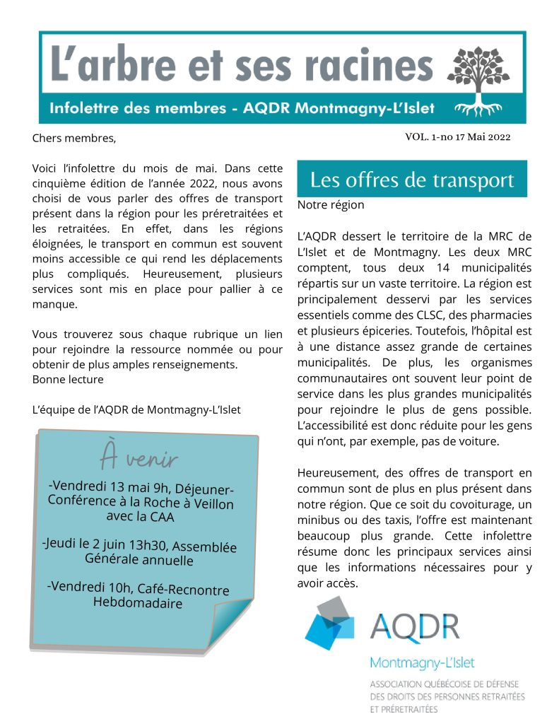 Infolettre Mai 2022